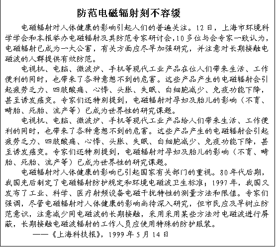 主题词:电磁辐射、危害、情况、
